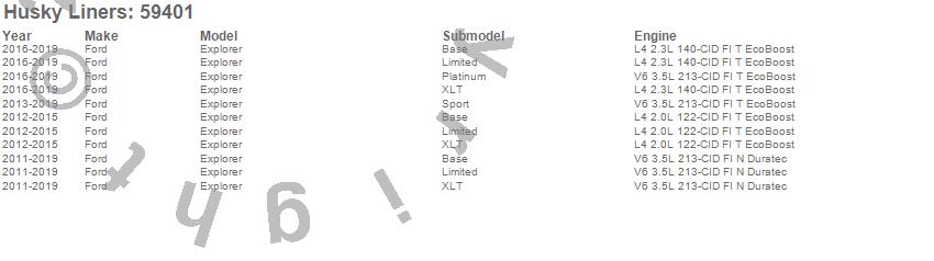 Below is an abbreviated list of applications for the Custom Molded Mud Guards.Explorer, Ford, 2019, 2018, 2017, 2016, 2015, 2014, 2013, 2012, 2011