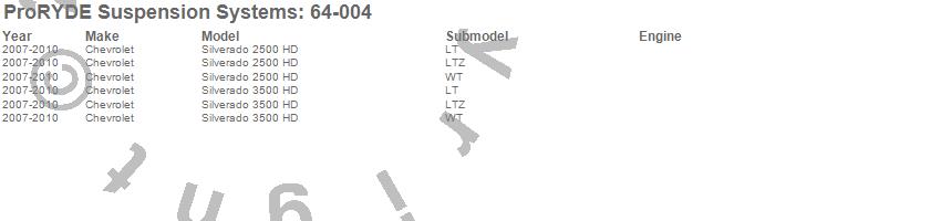Below is an abbreviated list of applications for the Heavy Duty Shock Extender.Silverado 2500 HD, Silverado 3500 HD, Chevrolet, 2010, 2009, 2008, 2007