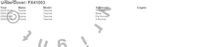 Below is an abbreviated list of applications for the FLEX Tonneau Cover.Tacoma, Toyota, 2015, 2014, 2013, 2012, 2011, 2010, 2009, 2008, 2007, 2006, 2005