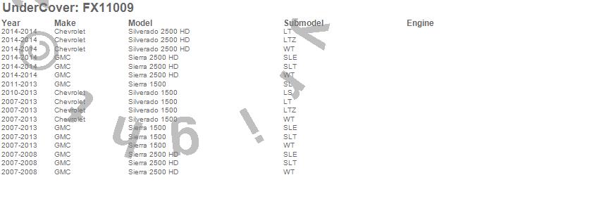 Below is an abbreviated list of applications for the FLEX Tonneau Cover.Sierra 1500, Sierra 2500 HD, Silverado 1500, Silverado 2500 HD, Chevrolet, GMC, 2014, 2013, 2012, 2011, 2010, 2009, 2008, 2007