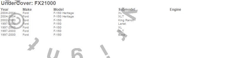 Below is an abbreviated list of applications for the FLEX Tonneau Cover.F-150, F-150 Heritage, Ford, 2004, 2003, 2002, 2001, 2000, 1999, 1998, 1997