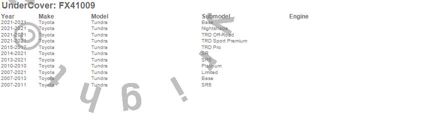Below is an abbreviated list of applications for the FLEX Tonneau Cover.Tundra, Toyota, 2021, 2020, 2019, 2018, 2017, 2016, 2015, 2014, 2013, 2012, 2011, 2010, 2009, 2008, 2007