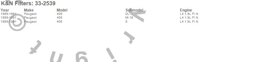 Below is an abbreviated list of applications for the Air Filter.405, Peugeot, 1991, 1990, 1989