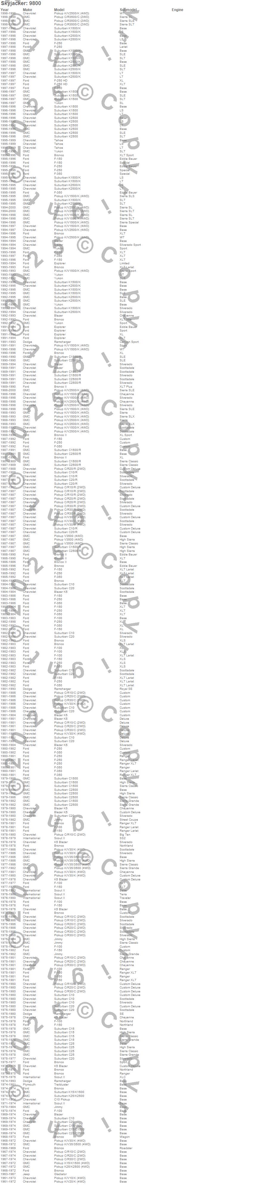 Below is an abbreviated list of applications for the Steering Stabilizer.Blazer, Blazer K5, Bronco, Bronco II, C10 Pickup, C10 Suburban, C15 Suburban, C15/C1500 Suburban, C1500 Suburban, C20 Pickup, C20 Suburban, C25 Suburban, C25/C2500 Suburban, C2500 Suburban, C30 Pickup, C3500 Pickup, Explorer, F-100 Pickup, F-150 Pickup, F-250 Pickup