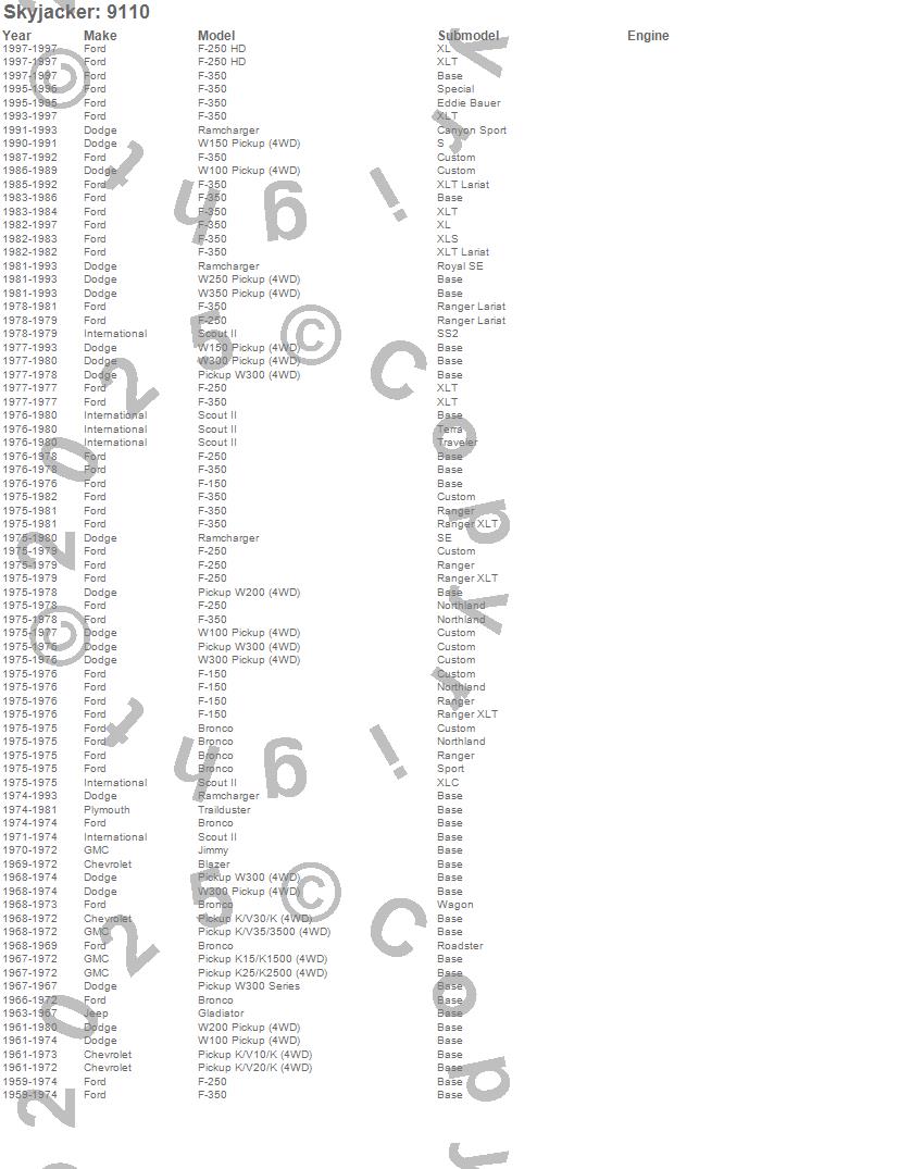 Below is an abbreviated list of applications for the Steering Stabilizer Single Kit.Blazer, Bronco, F-150 Pickup, F-250 Pickup, F-350 Pickup, Gladiator, Jimmy, K10 Pickup, K15/K1500 Pickup, K20 Pickup, K25/K2500 Pickup, K30 Pickup, K35/K3500 Pickup, Ramcharger, Scout II, Trailduster, W100 Pickup, W100 Series, W150 Pickup, W200 Pickup