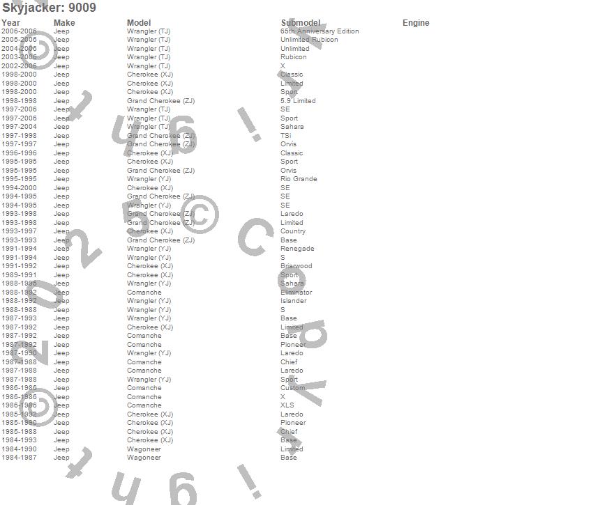 Below is an abbreviated list of applications for the Steering Stabilizer HD OEM Replacement Kit.Cherokee (XJ), Comanche, Grand Cherokee (ZJ), TJ, Wagoneer, Wrangler (LJ), Wrangler (TJ), Wrangler (YJ), Jeep, 2006, 2005, 2004, 2003, 2002, 2001, 2000, 1999, 1998, 1997, 1996