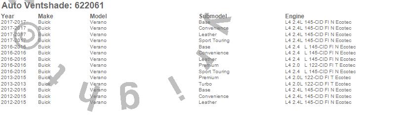 Below is an abbreviated list of applications for the Aeroskin Chrome Hood Protector.Verano, Buick, 2017, 2016, 2015, 2014, 2013, 2012