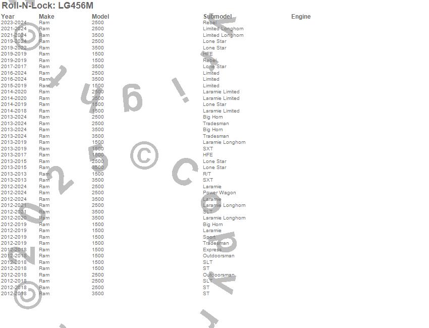 Below is an abbreviated list of applications for the Roll-N-Lock M-Series Truck Bed Cover.1500, 2500, 3500, Ram, 2024, 2023, 2022, 2021, 2020, 2019, 2018, 2017, 2016, 2015, 2014, 2013, 2012