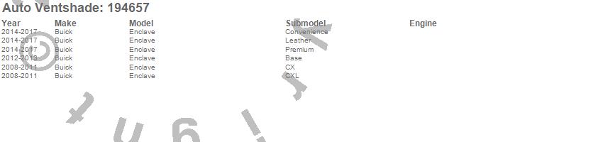 Below is an abbreviated list of applications for the Ventvisor In-Channel Deflector 4 pc..Enclave, Buick, 2017, 2016, 2015, 2014, 2013, 2012, 2011, 2010, 2009, 2008