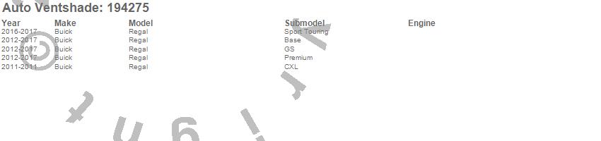 Below is an abbreviated list of applications for the Ventvisor In-Channel Deflector 4 pc..Regal, Buick, 2017, 2016, 2015, 2014, 2013, 2012, 2011