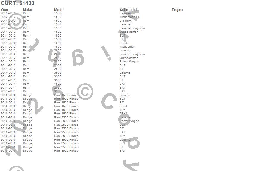 Below is an abbreviated list of applications for the Brake Control Adapter Harness.1500, 2500, 3500, Ram 1500, Ram 2500, Ram 3500, Dodge, Ram, 2012, 2011, 2010