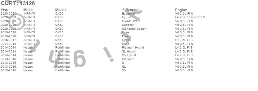 Below is an abbreviated list of applications for the Class III 2 in. Receiver Hitch.Pathfinder, QX60, INFINITI, Nissan, 2020, 2019, 2018, 2017, 2016, 2015, 2014, 2013