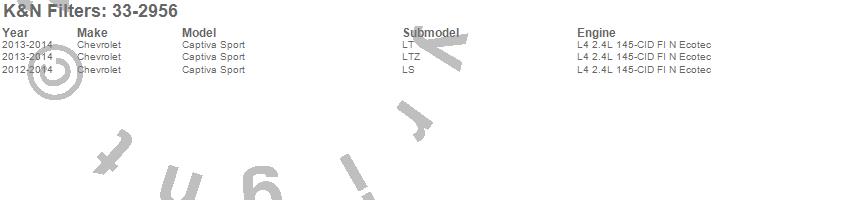 Below is an abbreviated list of applications for the Air Filter.Captiva Sport, Chevrolet, 2014, 2013, 2012