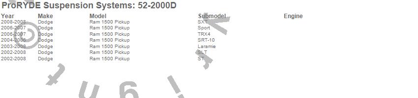 Below is an abbreviated list of applications for the SuperBlok 3 In 1 Block and U-Bolt Kit.Ram 1500, Dodge, 2008, 2007, 2006, 2005, 2004, 2003, 2002