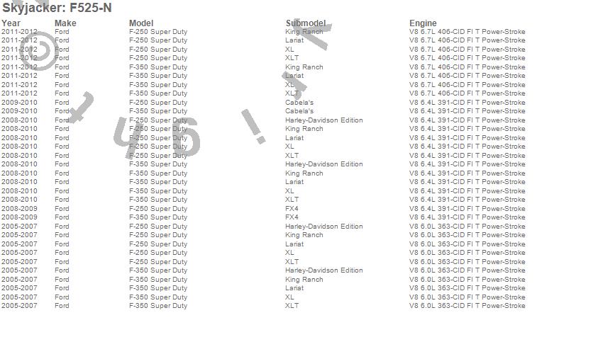 Brand: SkyjackerPart Number: F525-NLift Kit-Suspension w/Shock Type: Nitro Shocks - Front w/2 in. LiftUPC: