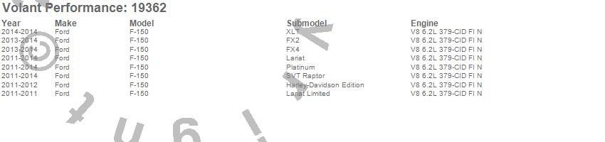 Below is an abbreviated list of applications for the Cold Air Intake Kit.F-150, Ford, 2014, 2013, 2012, 2011