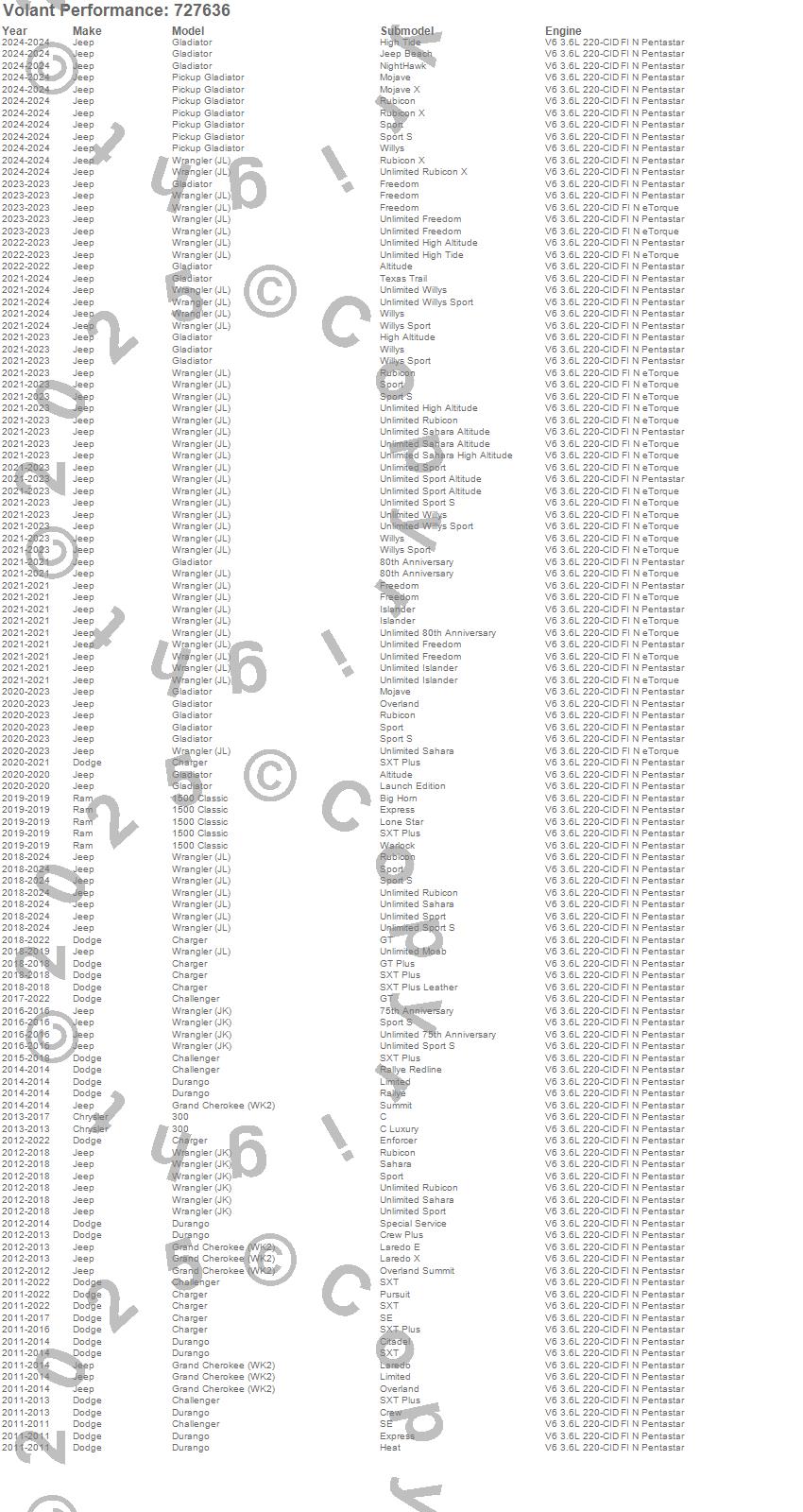 Below is an abbreviated list of applications for the Vortice Throttle Body Spacer.1500 Classic, 300, Challenger, Charger, Durango, Gladiator, Grand Cherokee (WK2), Pickup Gladiator, Wrangler (JK), Wrangler (JL), Chrysler, Dodge, Jeep, Ram, 2024, 2023, 2022, 2021, 2020, 2019