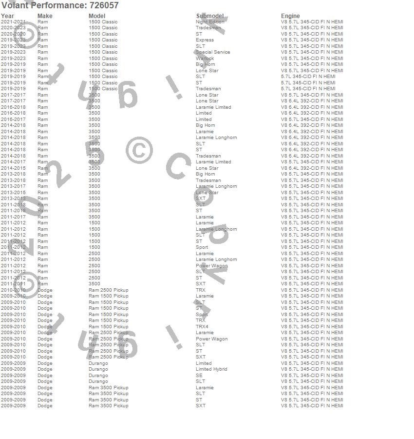 Below is an abbreviated list of applications for the Vortice Throttle Body Spacer.1500, 1500 Classic, 2500, 3500, Durango, Ram 1500, Ram 2500, Ram 3500, Dodge, Ram, 2023, 2022, 2021, 2020, 2019, 2018, 2017, 2016, 2015, 2014