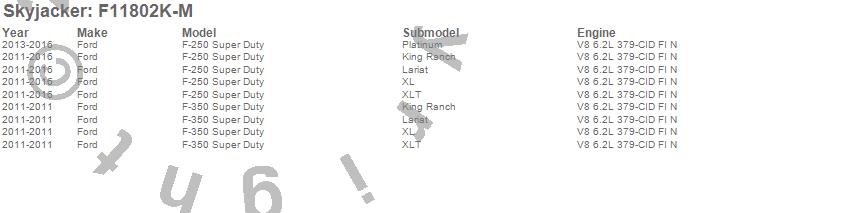 Below is an abbreviated list of applications for the Suspension Lift Kit w/Shock.F-250 Super Duty Pickup, F-350 Super Duty Pickup, Ford, 2012, 2011