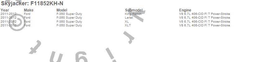 Below is an abbreviated list of applications for the Suspension Lift Kit w/Shock.F-350 Super Duty Pickup, Ford, 2012, 2011