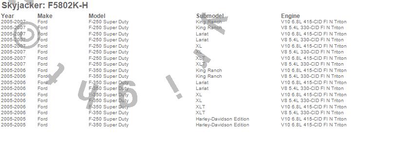 Below is an abbreviated list of applications for the Suspension Lift Kit w/Shock.F-250 Super Duty Pickup, F-350 Super Duty Pickup, Ford, 2007, 2006, 2005