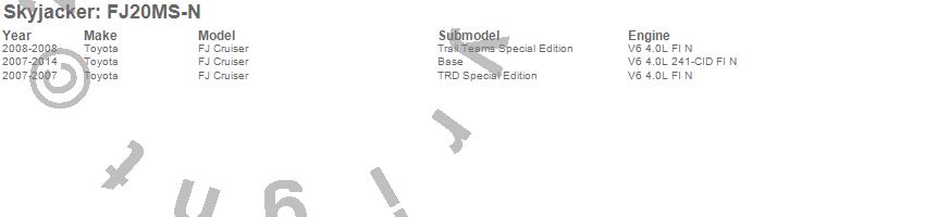 Brand: SkyjackerPart Number: FJ20MS-NLift Kit-Suspension w/Shock Type: Nitro Shocks - 2 in. Lift - Incl. 2 in. Front Metal SpacersUPC: