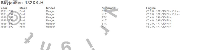 Brand: SkyjackerPart Number: 132XK-HLift Kit-Suspension w/Shock Type: Hydro Shocks - 1.5-2 in. Lift - Incl. Front Coil Springs - Rear Add-A-Leafs - Ranger XLT/STXUPC: