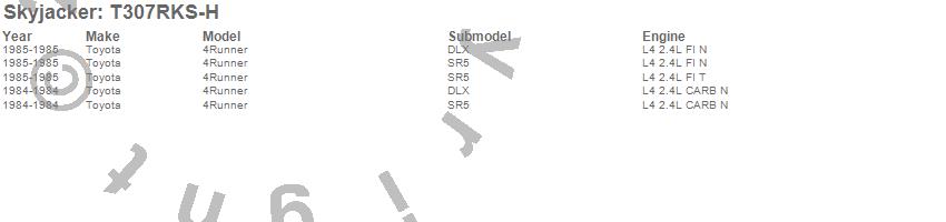Brand: SkyjackerPart Number: T307RKS-HLift Kit-Suspension w/Shock Type: Hydro Shocks - 7 in. Lift - Incl. Front/Rear Leaf Springs - Front/Rear UBolt Kits - Front/Rear Spring Bushing Kits - Track Arm BracketUPC: