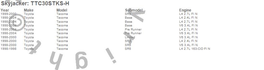 Brand: SkyjackerPart Number: TTC30STKS-HLift Kit-Suspension w/Shock Type: Hydro Shocks - 3 in. Lift - Incl. Main Component Box - Rear Leaf SpringsUPC: