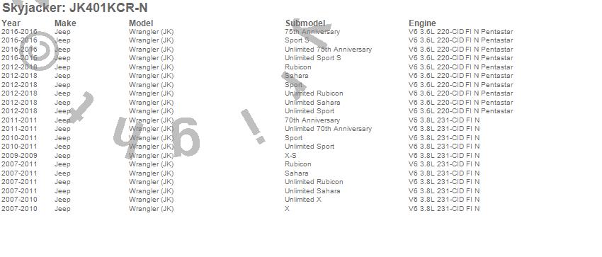 Below is an abbreviated list of applications for the Suspension Lift Kit w/Shock.Wrangler (JK), Jeep, 2012, 2011, 2010, 2009, 2008, 2007