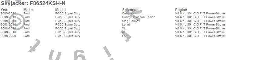 Below is an abbreviated list of applications for the Suspension Lift Kit w/Shock.F-350 Super Duty Pickup, Ford, 2010, 2009, 2008