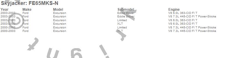 Below is an abbreviated list of applications for the Suspension Lift Kit w/Shock.Excursion, Ford, 2003, 2002, 2001, 2000