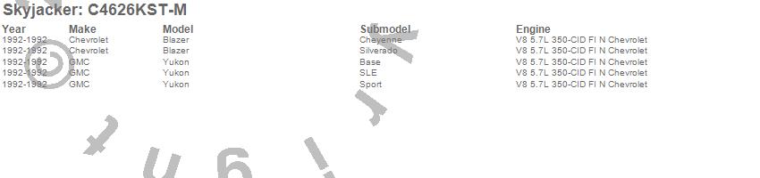 Below is an abbreviated list of applications for the Suspension Lift Kit w/Shock.Blazer, Yukon, Chevrolet, GMC, 1992