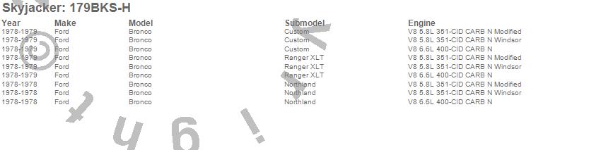 Brand: SkyjackerPart Number: 179BKS-HLift Kit-Suspension w/Shock Type: Hydro Shocks - 9 in. Lift - Incl. Front/Rear Springs - Rear UBolt KitUPC: