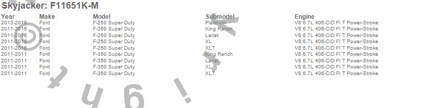 Below is an abbreviated list of applications for the Suspension Lift Kit w/Shock.F-250 Super Duty Pickup, F-350 Super Duty Pickup, Ford, 2012, 2011