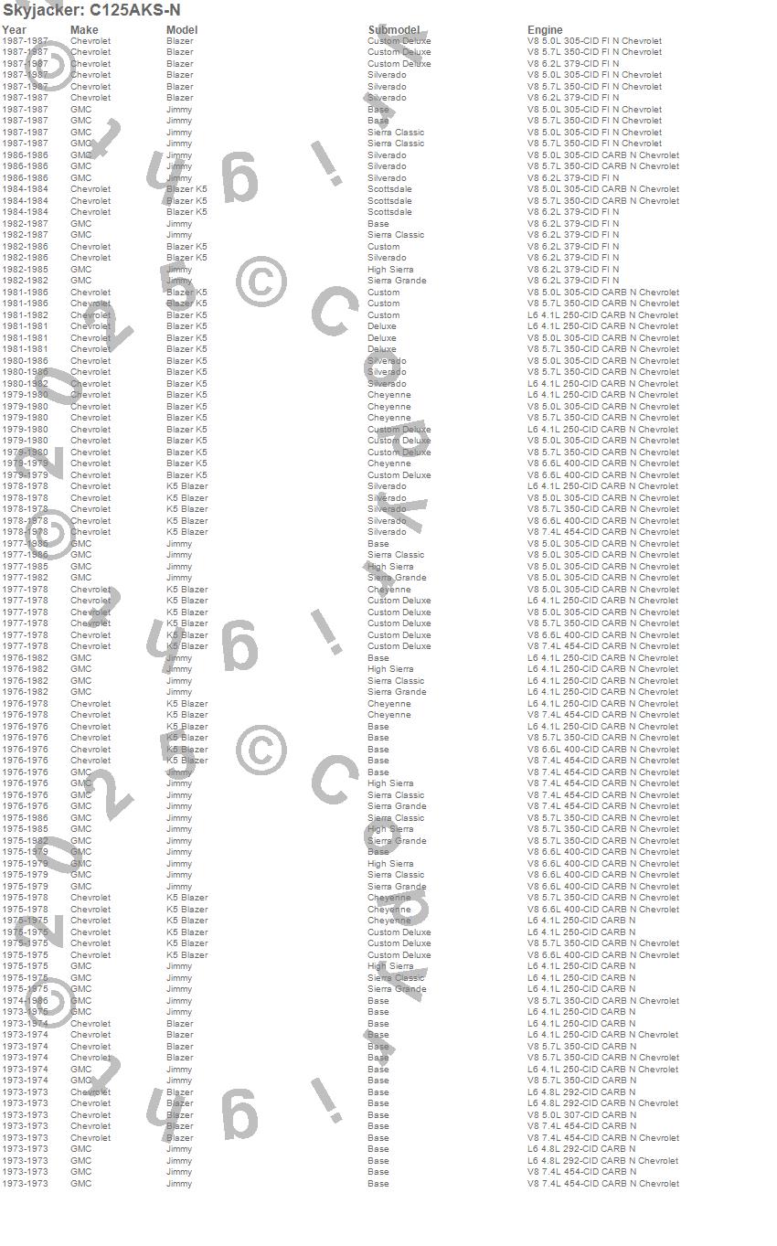 Below is an abbreviated list of applications for the Suspension Lift Kit w/Shock.Blazer, Blazer K5, Jimmy, Chevrolet, GMC, 1987, 1986, 1985, 1984, 1983, 1982, 1981, 1980, 1979, 1978, 1977, 1976, 1975, 1974, 1973