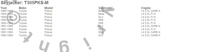 Below is an abbreviated list of applications for the Suspension Lift Kit w/Shock.Pickup, Toyota, 1985, 1984, 1983, 1982, 1981, 1980