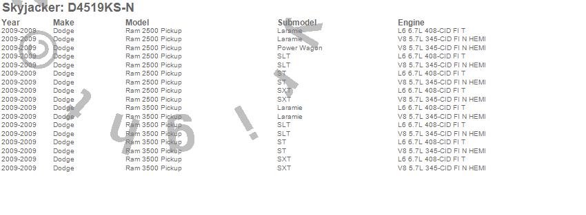 Below is an abbreviated list of applications for the Suspension Lift Kit w/Shock.Ram 2500 Pickup, Ram 3500 Pickup, Dodge, 2009, 2008, 2007, 2006
