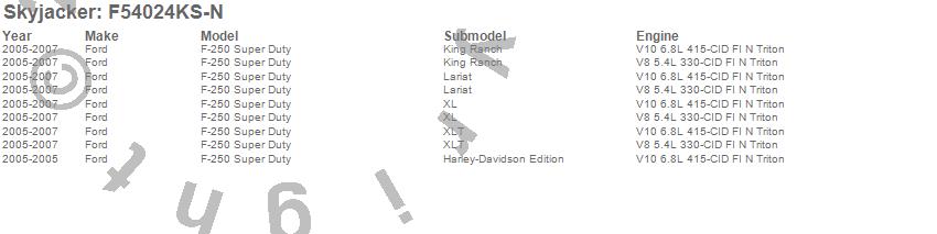Below is an abbreviated list of applications for the Suspension Lift Kit w/Shock.F-250 Super Duty Pickup, Ford, 2007, 2006, 2005