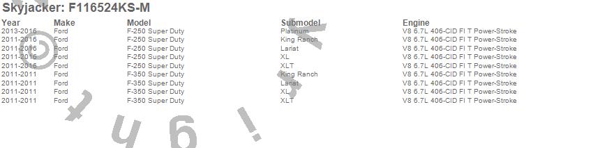 Brand: SkyjackerPart Number: F116524KS-MLift Kit-Suspension w/Shock Type: M95 Performance Shocks - 6 in. Lift System - Incl. FrClSpg/SwyBrLwrgBkt - TrkBrReloBkt - RadArmBkt - SteerStabBkt - BmpStpBkt - BrkLnXBkt - RrLfSpg/UbltUPC: