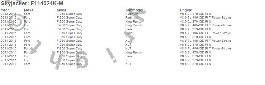Below is an abbreviated list of applications for the Suspension Lift Kit w/Shock.F-250 Super Duty Pickup, F-350 Super Duty Pickup, Ford, 2012, 2011