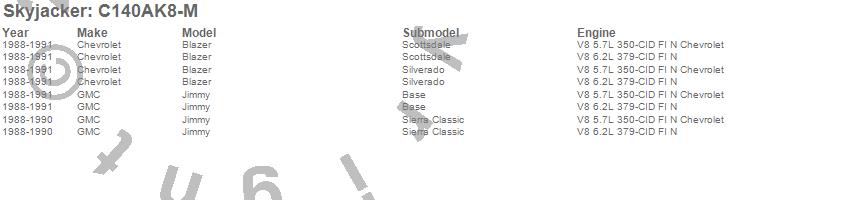 Brand: SkyjackerPart Number: C140AK8-MLift Kit-Suspension w/Shock Type: M95 Performance Shocks - 4 in. Lift - Incl. Front Leaf Springs - Front/Rear UBolt Kits - Bushing Kit - Rear BlockUPC: