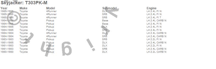 Below is an abbreviated list of applications for the Suspension Lift Kit w/Shock.4Runner, Pickup, Toyota, 1985, 1984, 1983, 1982, 1981, 1980