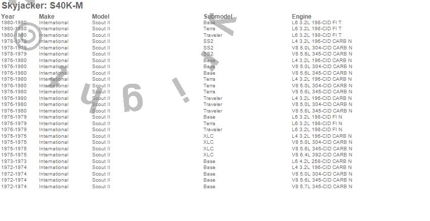Below is an abbreviated list of applications for the Suspension Lift Kit w/Shock.Scout II, International, 1980, 1979, 1978, 1977, 1976, 1975, 1974, 1973, 1972