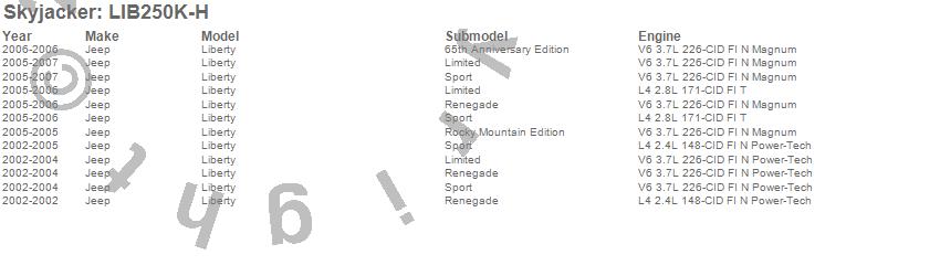 Below is an abbreviated list of applications for the Suspension Lift Kit w/Shock.Liberty, Jeep, 2007, 2006, 2005, 2004, 2003, 2002