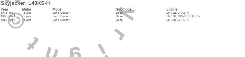 Below is an abbreviated list of applications for the Suspension Lift Kit w/Shock.Land Cruiser, Toyota, 1980, 1979, 1978, 1977, 1976, 1975, 1974, 1973, 1972, 1971, 1970, 1969, 1968, 1967
