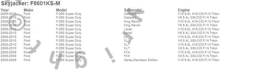 Below is an abbreviated list of applications for the Suspension Lift Kit w/Shock.F-250 Super Duty Pickup, Ford, 2010, 2009, 2008