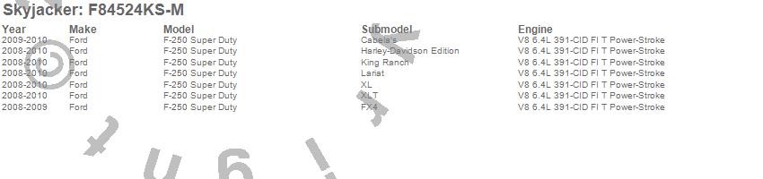 Below is an abbreviated list of applications for the Suspension Lift Kit w/Shock.F-250 Super Duty Pickup, Ford, 2010, 2009, 2008
