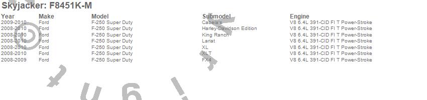 Below is an abbreviated list of applications for the Suspension Lift Kit w/Shock.F-250 Super Duty Pickup, Ford, 2010, 2009, 2008