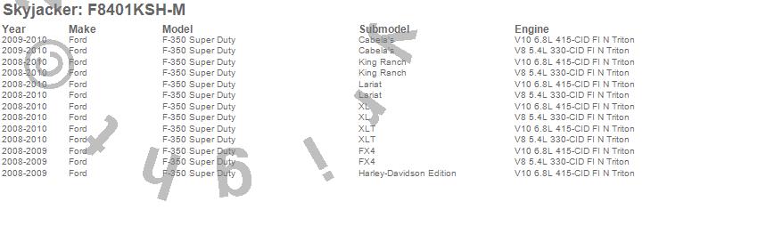 Below is an abbreviated list of applications for the Suspension Lift Kit w/Shock.F-350 Super Duty Pickup, Ford, 2010, 2009, 2008